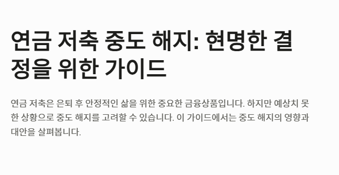 연금 저축은 은퇴 이후의 안정적인 삶을 위해 설계된 대표적인 금융상품입니다. 하지만 예상치 못한 상황으로 인해 중도 해지를 고려해야 하는 경우도 발생할 수 있습니다. 이러한 경우 손실을 최소화하고 더 나은 대안을 찾기 위해 사전에 충분히 이해하고 준비하는 것이 중요합니다.