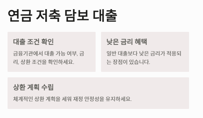 다만, 대출 상환 능력을 충분히 고려해야 하며, 상환 계획을 체계적으로 세우는 것이 중요합니다. 이 방법은 연금을 유지하면서도 긴급한 자금 수요를 충족시킬 수 있는 효과적인 대안으로 평가됩니다.
