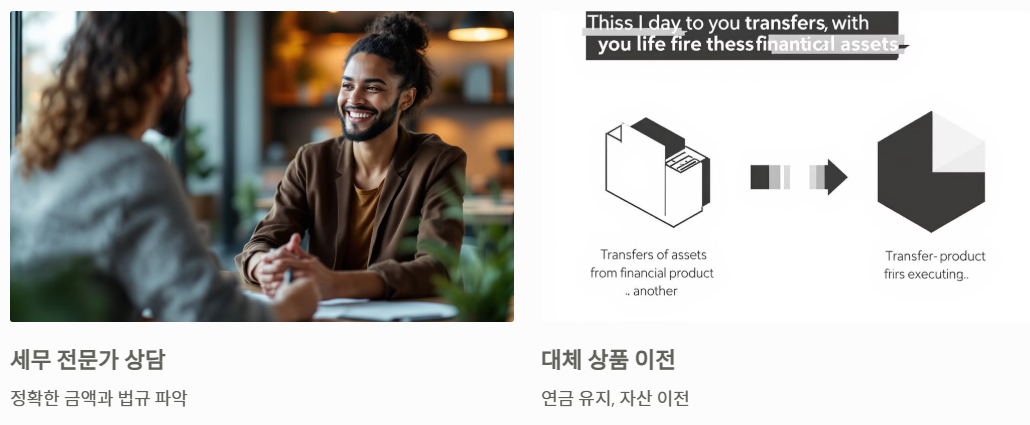 연금을 해지하지 않고 대체 상품으로 자산을 이전하는 것도 하나의 방법입니다. 이 과정에서 발생할 수 있는 세금과 수수료를 면밀히 검토하고, 장기적인 재정 계획을 세워야 합니다. 가능한 한 연금을 유지하며 혜택을 계속 누리는 것이 재정적으로 더 유리할 수 있습니다.