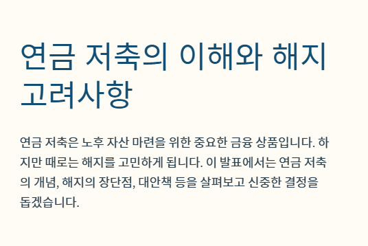 반면, 연금 저축을 해지할 경우에는 여러 가지 손실과 불이익이 발생할 수 있습니다.
