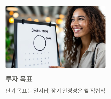 - 투자 목표 설정: 단기적인 목표인지, 장기적인 안정성을 원하는지에 따라 방식을 결정하세요.